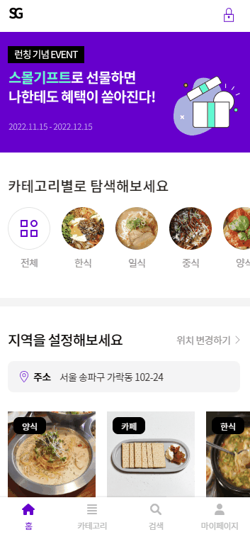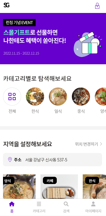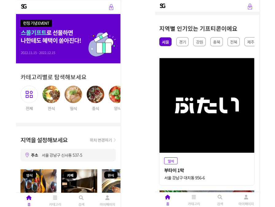 기프티콘을 볼 수 있다 지역 설정을통한가게 검색이 가능하다