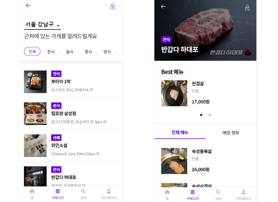 카테고리별,지역구별,지역별로가게 검색이 가능하다- 지역별 인기있는