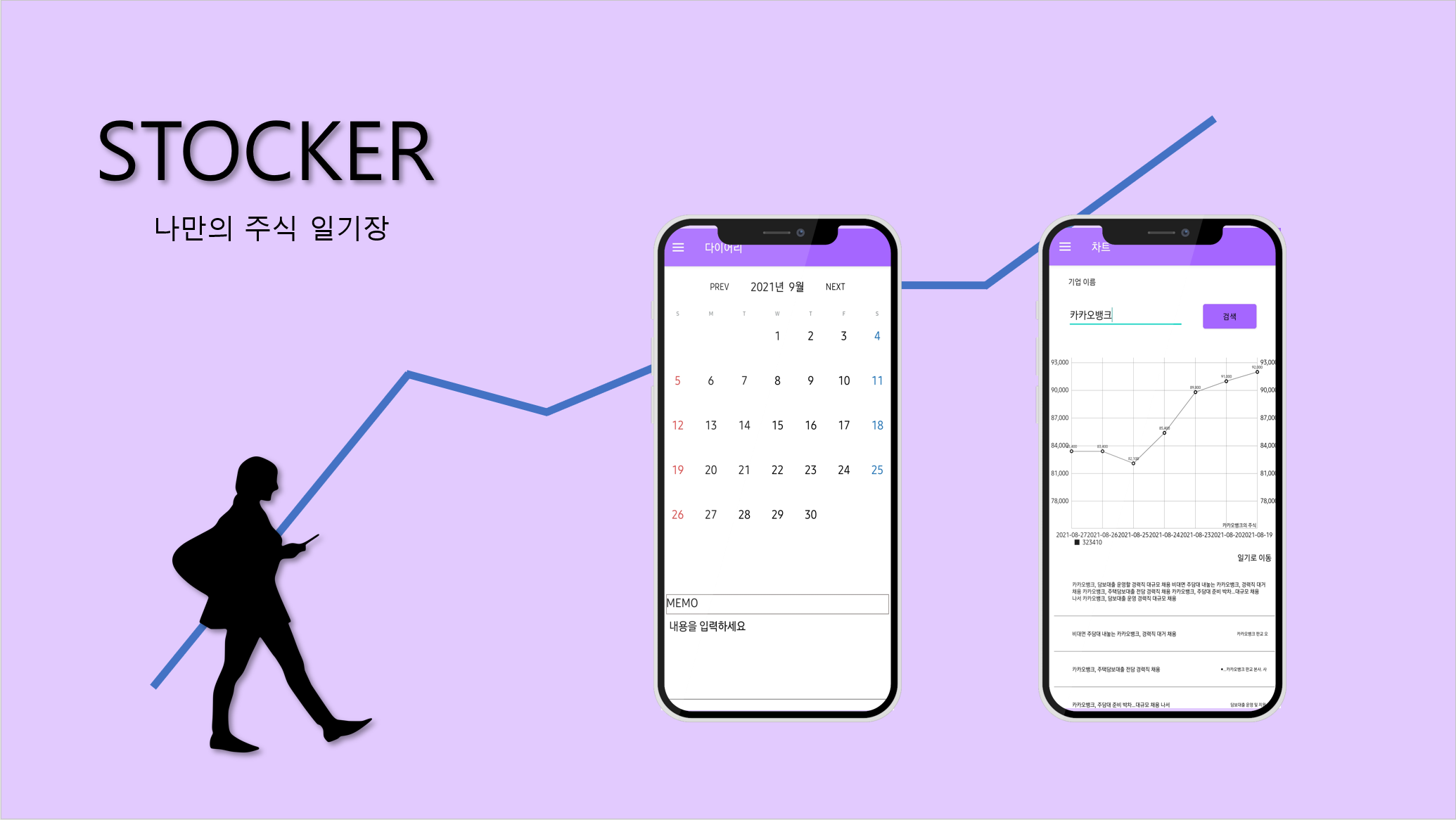 개인기록과 주식차트, 뉴스를 한눈에 보고 비교할 수 있습니다.
