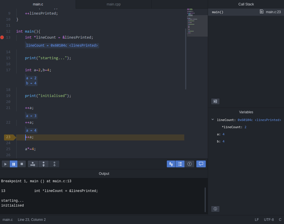 - Interactive debugger controls (Continue/pause/stop/step-over/step-in/step-out)