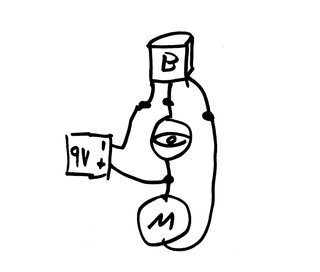 brvrbt synthetic emotion engines working sketch of a working model muscle / sense / brain motor/photoresistor/transistor excerpt from Vehicles Experiments in Synthetic Psychology http://brvrbt.tumblr.com