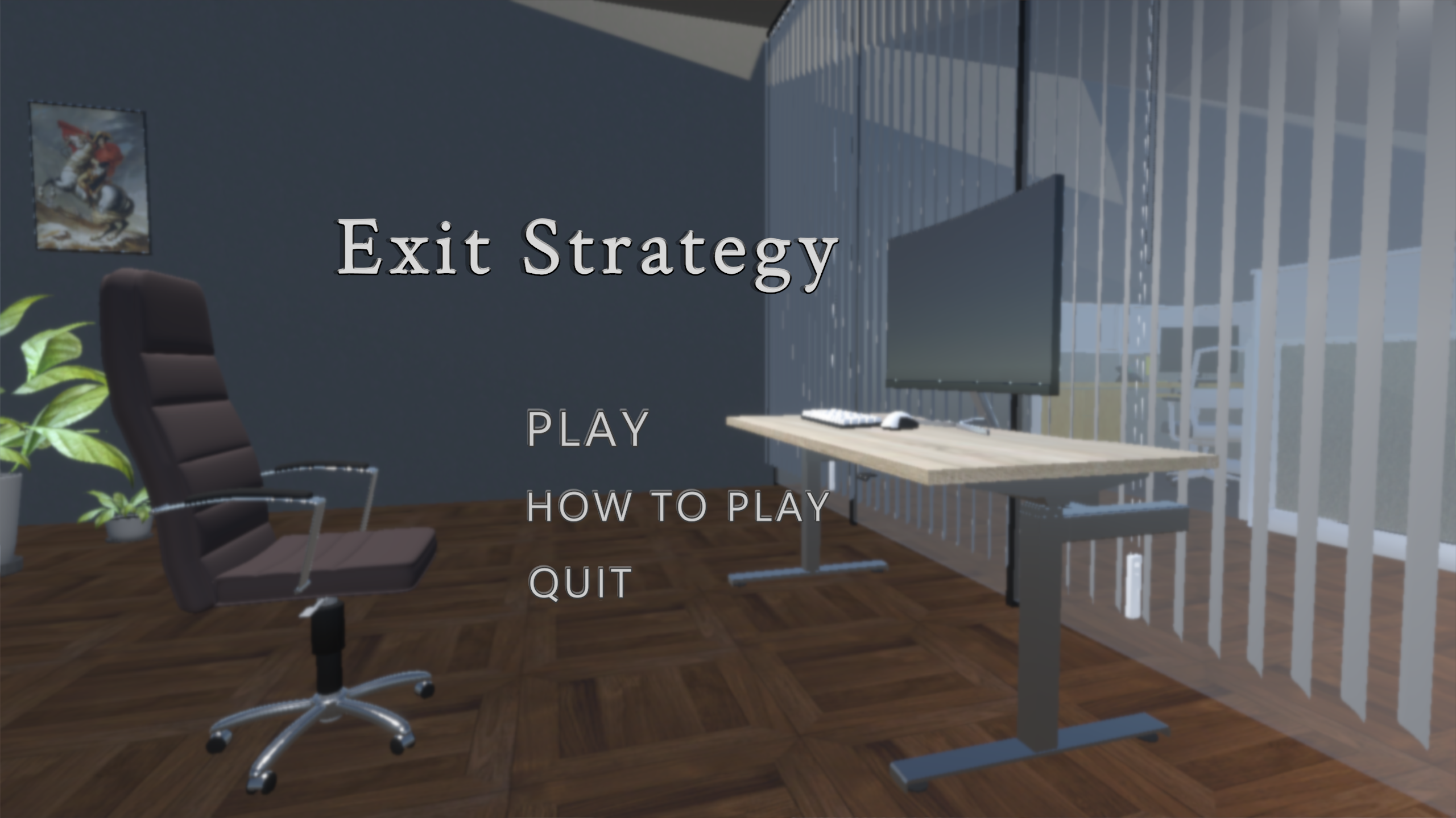 Exit Strategy - Suspenseful puzzle game 2022 school project using Unity made by: Joel Mieskonen Erkka Lappala Joona Karhu Download link to the game:https://drive.google.com/file/d/17VKba7UEZEEzpoKQbkAe5_Yq13c97Xiv/view?usp=sharing Images of the game