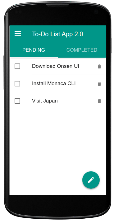- Playground: an interactive Onsen UI tutorial is also available where you can learn how to use the library and play around with the components.