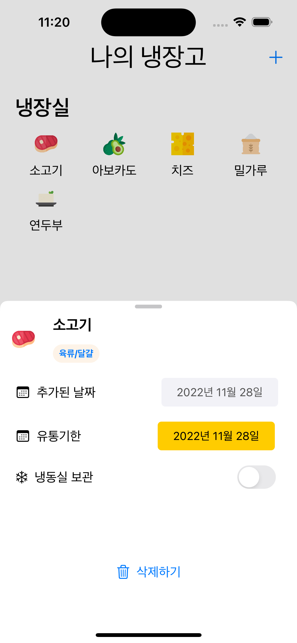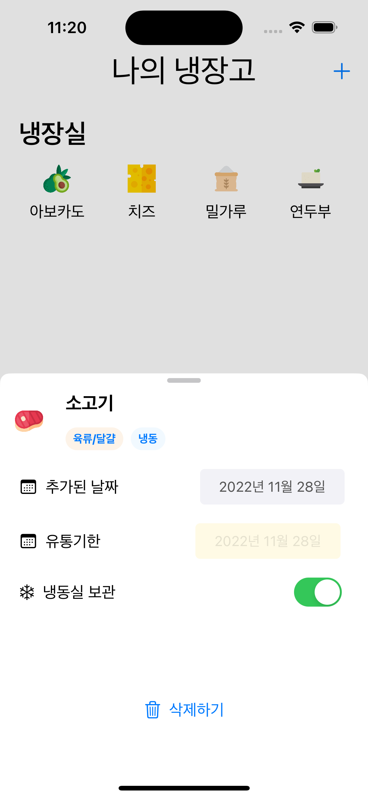- 냉장고에 보관중인 재료와 유통기한을 한 눈에 확인해 보세요!