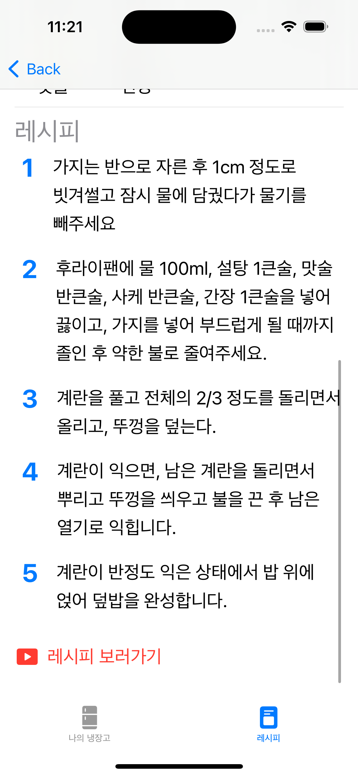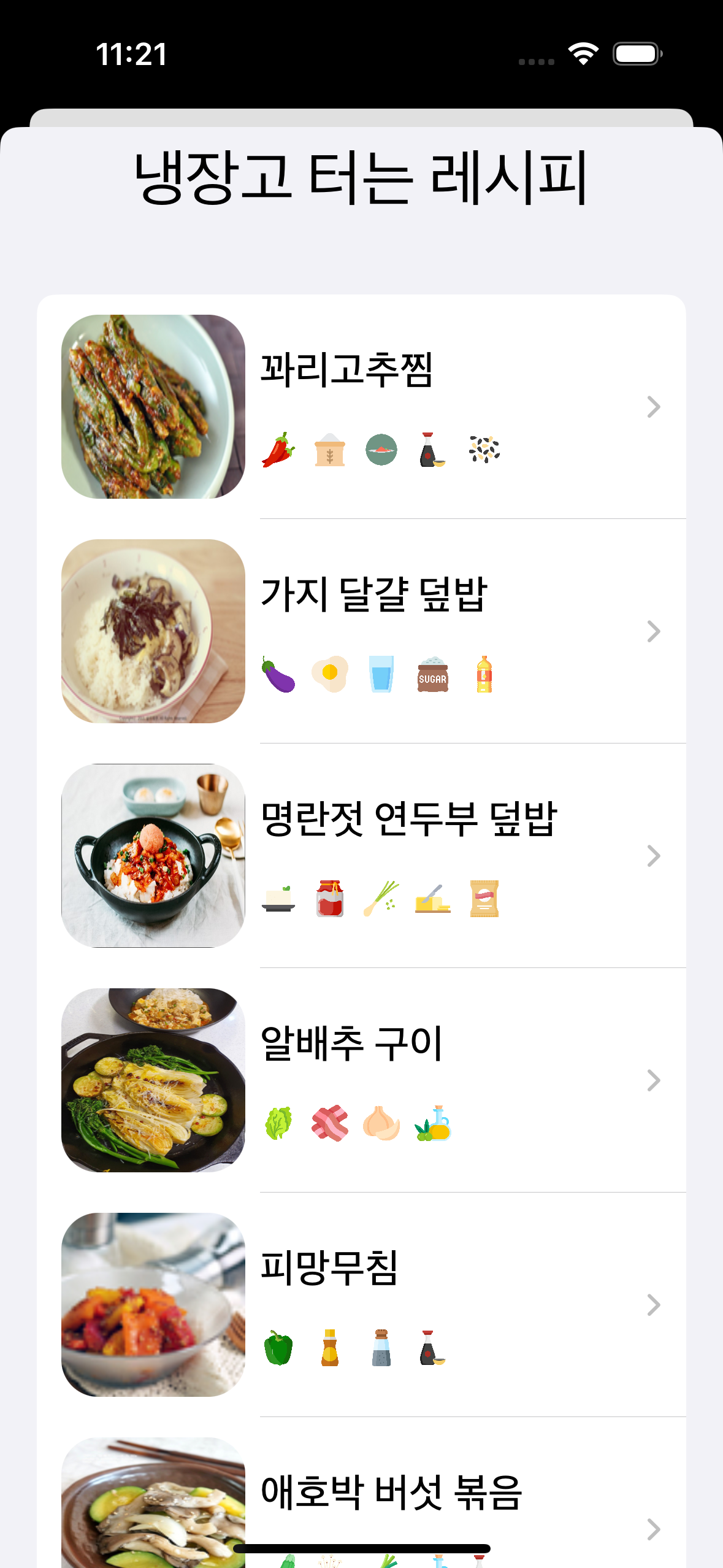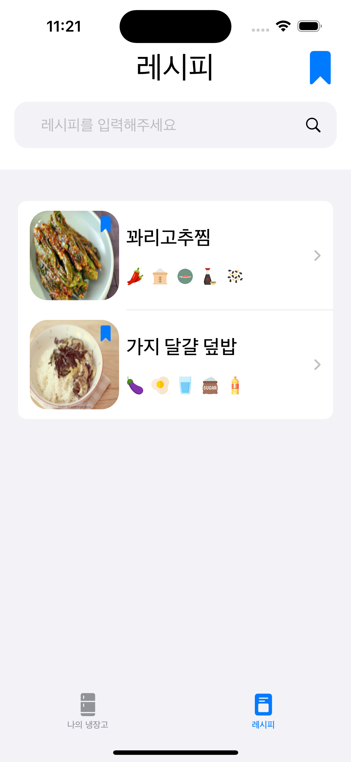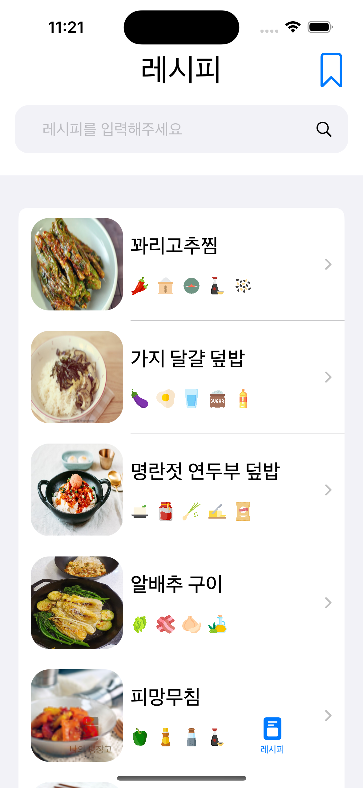- 현재 냉장고에 보유 중인 재료로 만들 수 있는 음식 레시피 추천