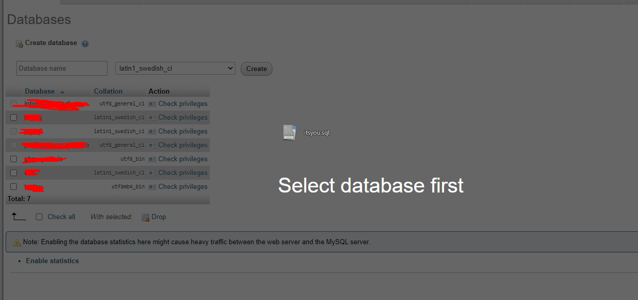 4. upload the sql db file