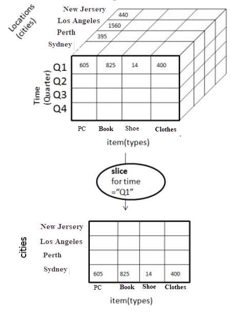 -Dimension Time is Sliced with Q1 as the filter. -A new cube is created altogether.