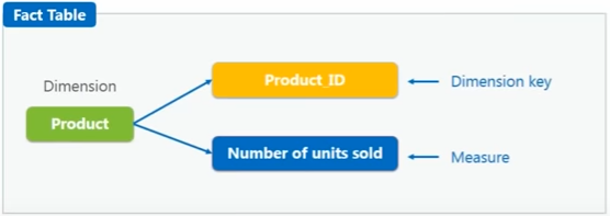 A Fact table contain 2 kinds of data- a dimension key and a measure