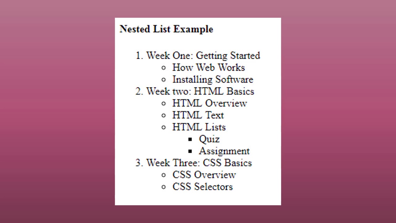 Lists can be nested inside one another.