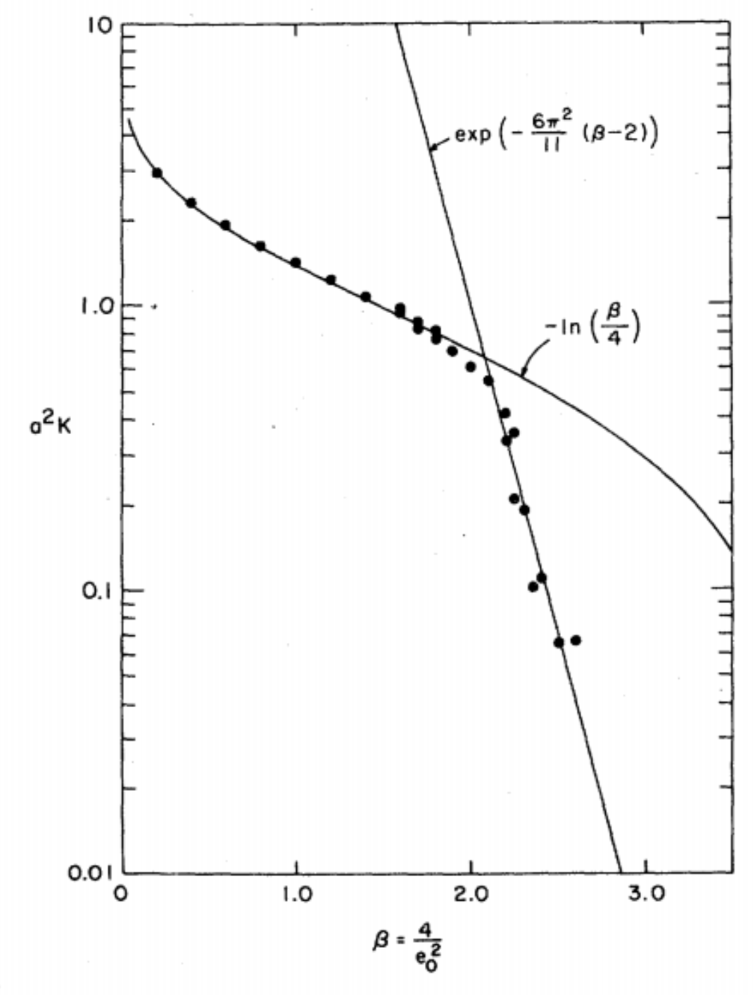 SU2-Heatbath Results An attempt to reproduce the results from Michael Creutz's paper on the string tension of lattice pure SU(2) gauge theory The original plot of interest between the string tension and gauge coupling strength: My reproduction using the code in the repo: