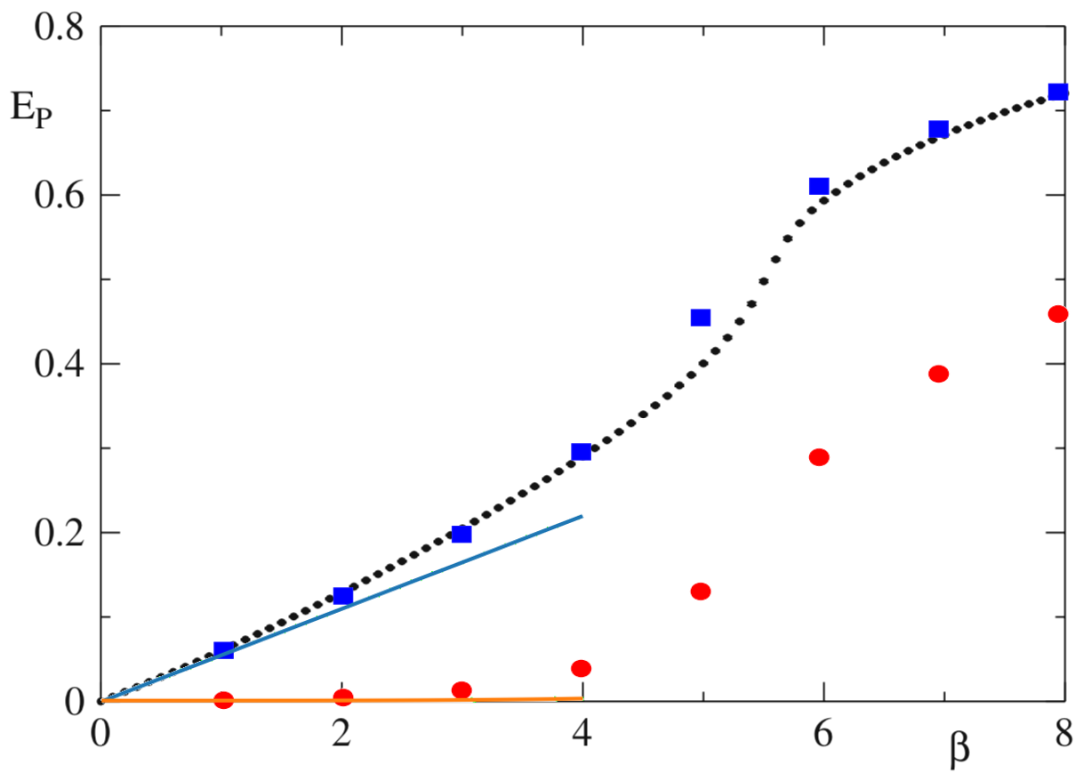 Here is a simple plot of my calculations of the 1x1 plaquette (blue) and 2x2 plaquette (orange) overlaid with the plot from Gattringer and Lang: