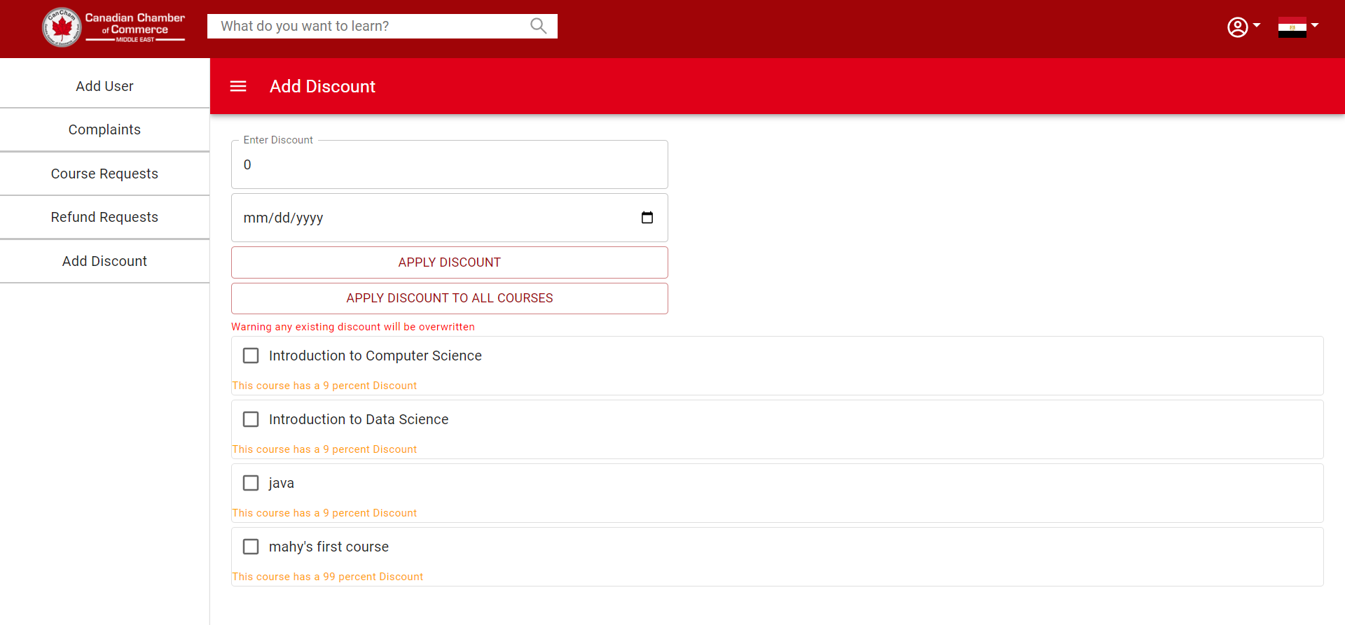 Add discount to a set of courses