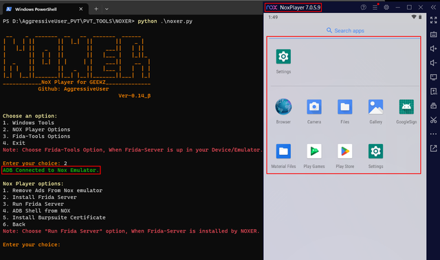 Noxer is a powerful Python script designed for automating Android penetration testing tasks within the Nox Player emulator.