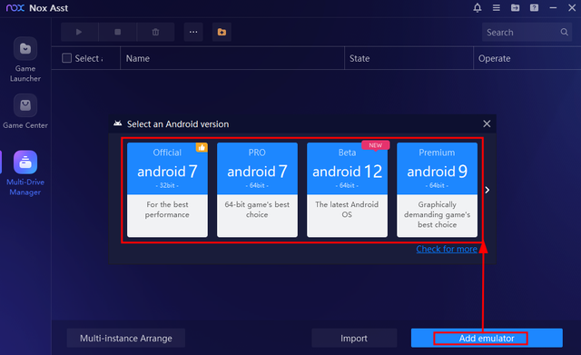Step: 1 Open Nox Asst and choose android version of your choice. STEP-1