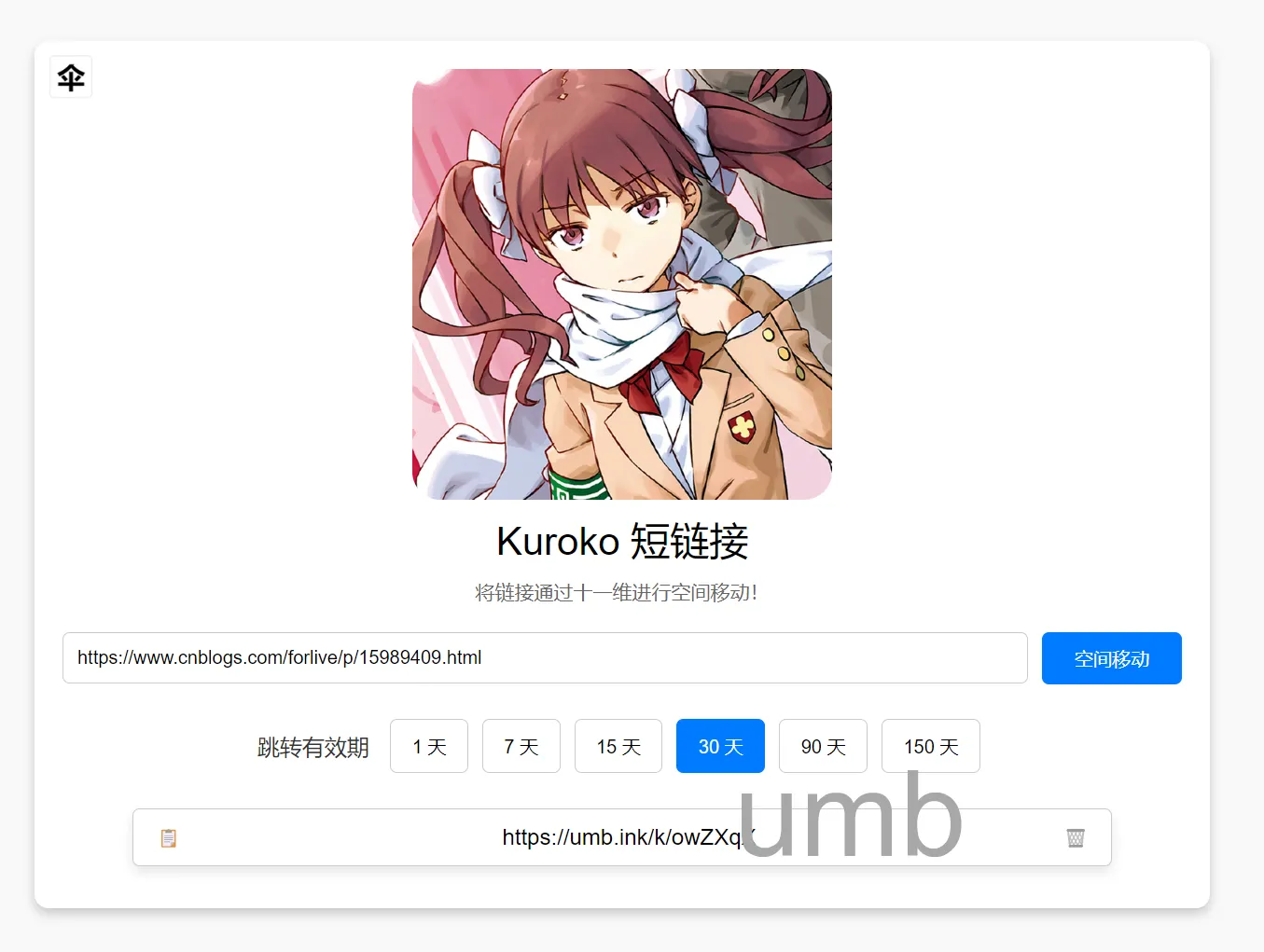 则访问https://umb.ink/k/。 若返回下面的页面,则正常