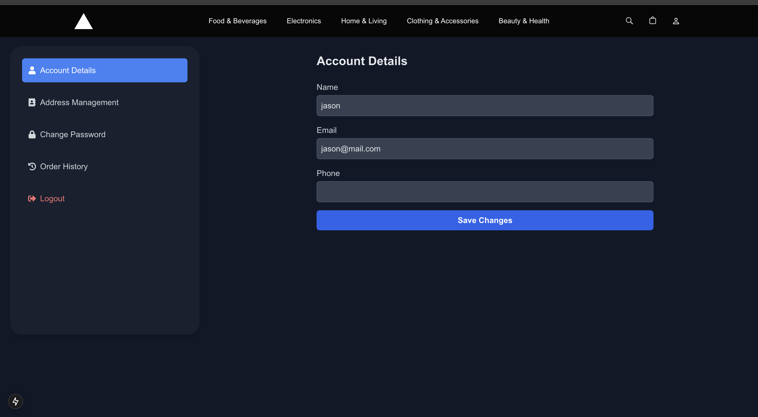 Commerce Blueprint My very first react project. Change the env.local file to modify the server location. The backend(Spring Boot) is in caproject Show Case Main Page Cart Account Center Item Detail 404 Page