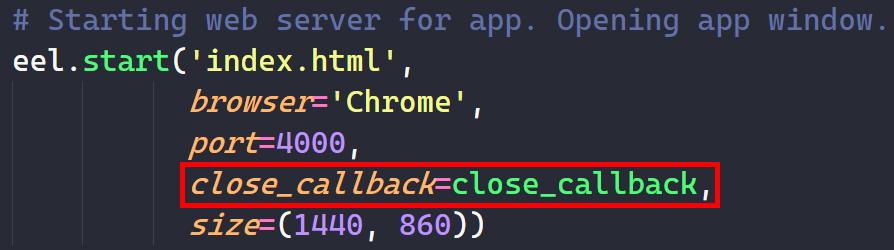 After closing the app window, the program will stop running. You can change it by deleting argument "close_callback" in this line: