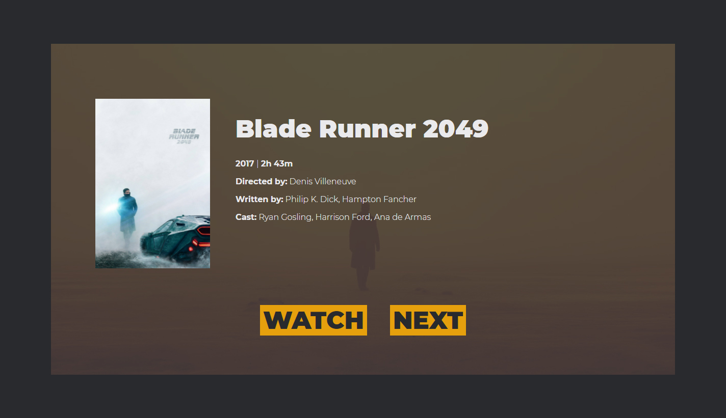 python3 randomPlexMovie.pyThis will start local web server on port 4000 and open Chrome App. If the port is colliding with something, you can change it in this line: