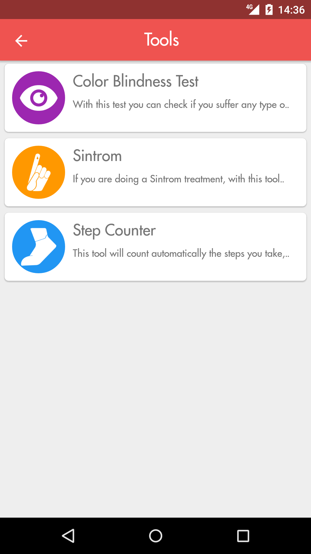 - CHANGE: Step Counter, Color Blindness Test & Sintrom.