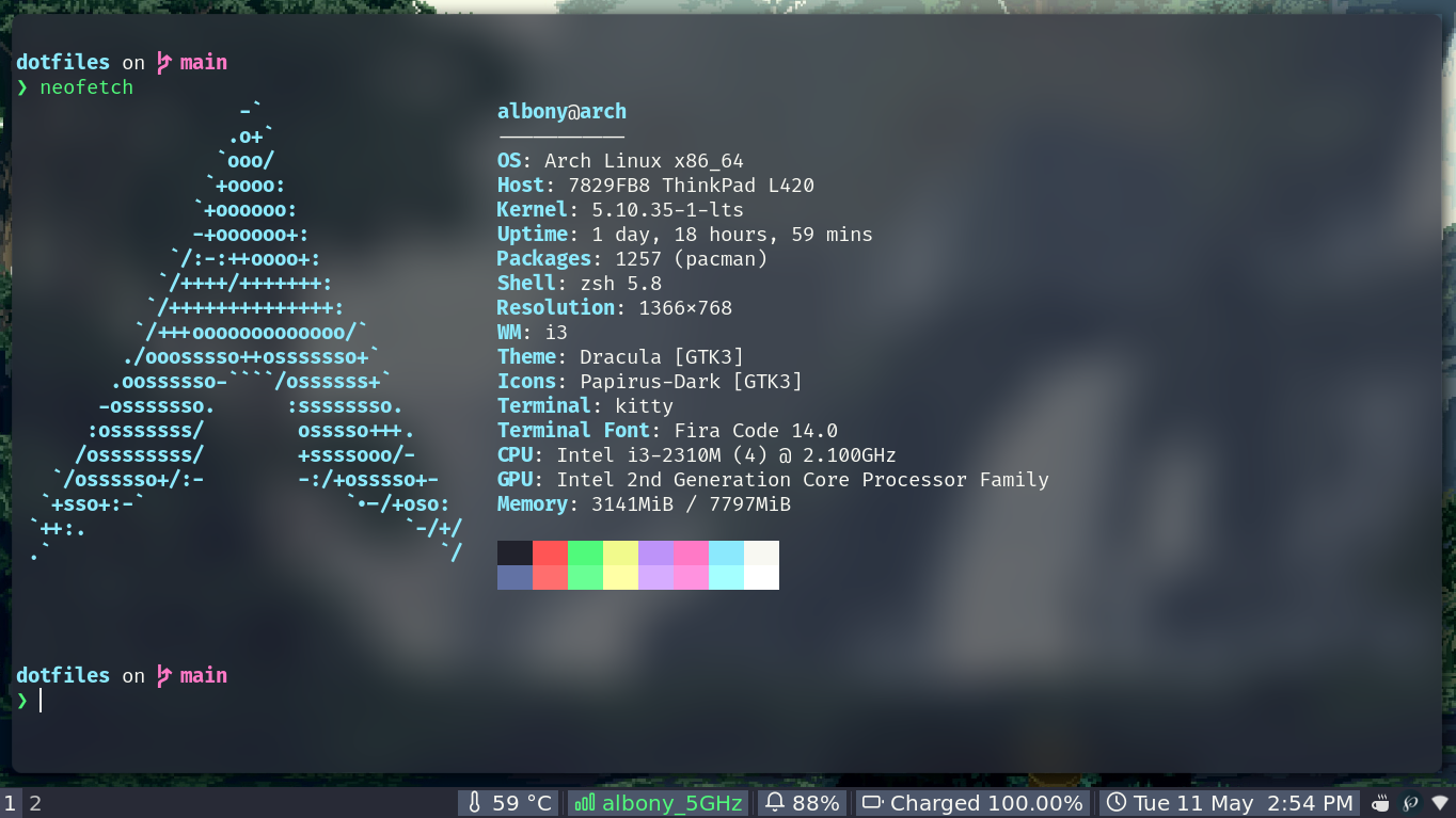 Included config's of dunst , i3-gaps & i3wm (as config.bak) nvim
