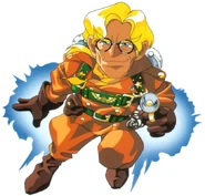 Ash | a 28 year old German inventor. He flies thanks to a Jetpack. He is an important character from Gunbird but has another appearances to Tengai. He appears in all the team endings with Marion (only in Sega Saturn version of the game). Therefore, he is not a playable character and, as we can see in his appearances, he has an insane interest for Marion because he is attracted to young girls. |