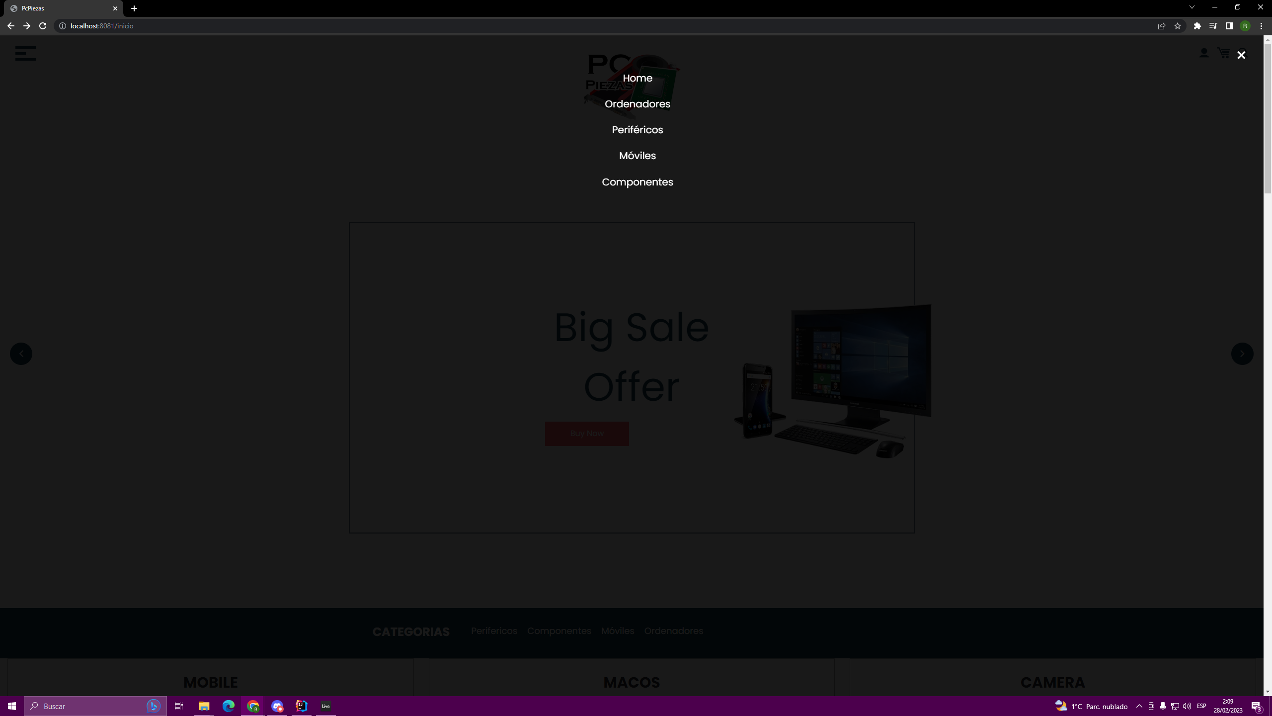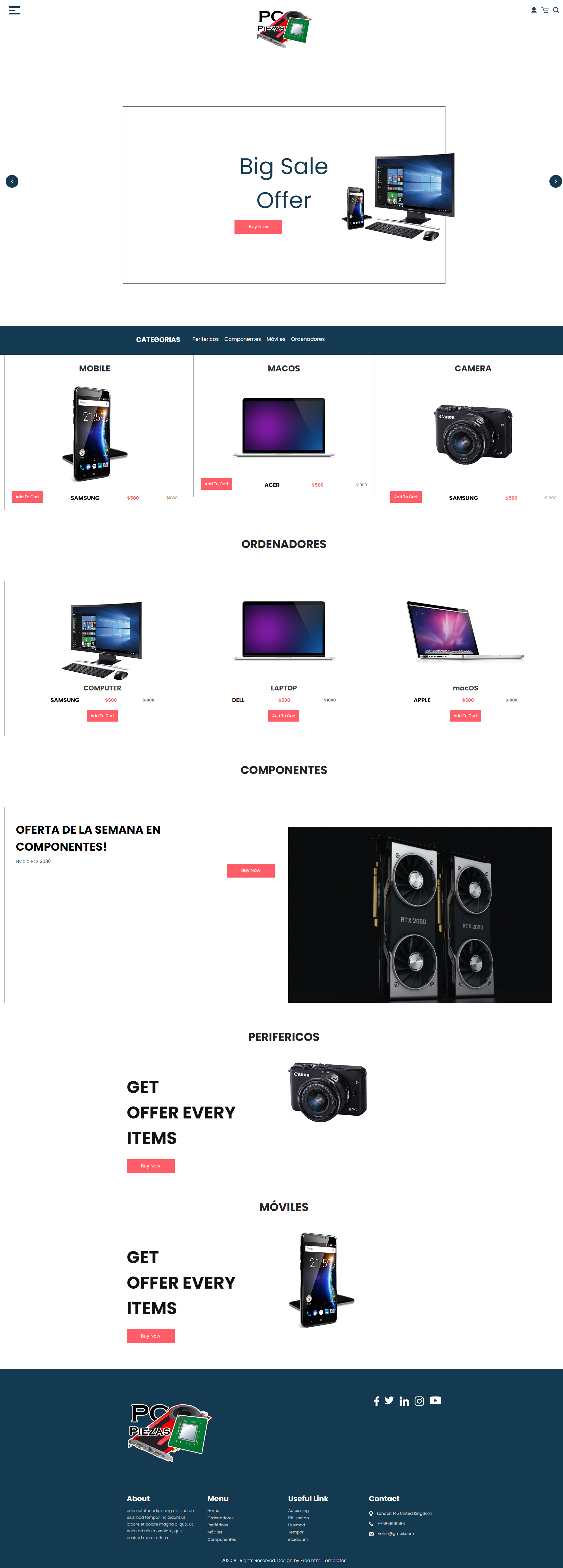 Web para la compra de ordenadores a piezas y perifericos.