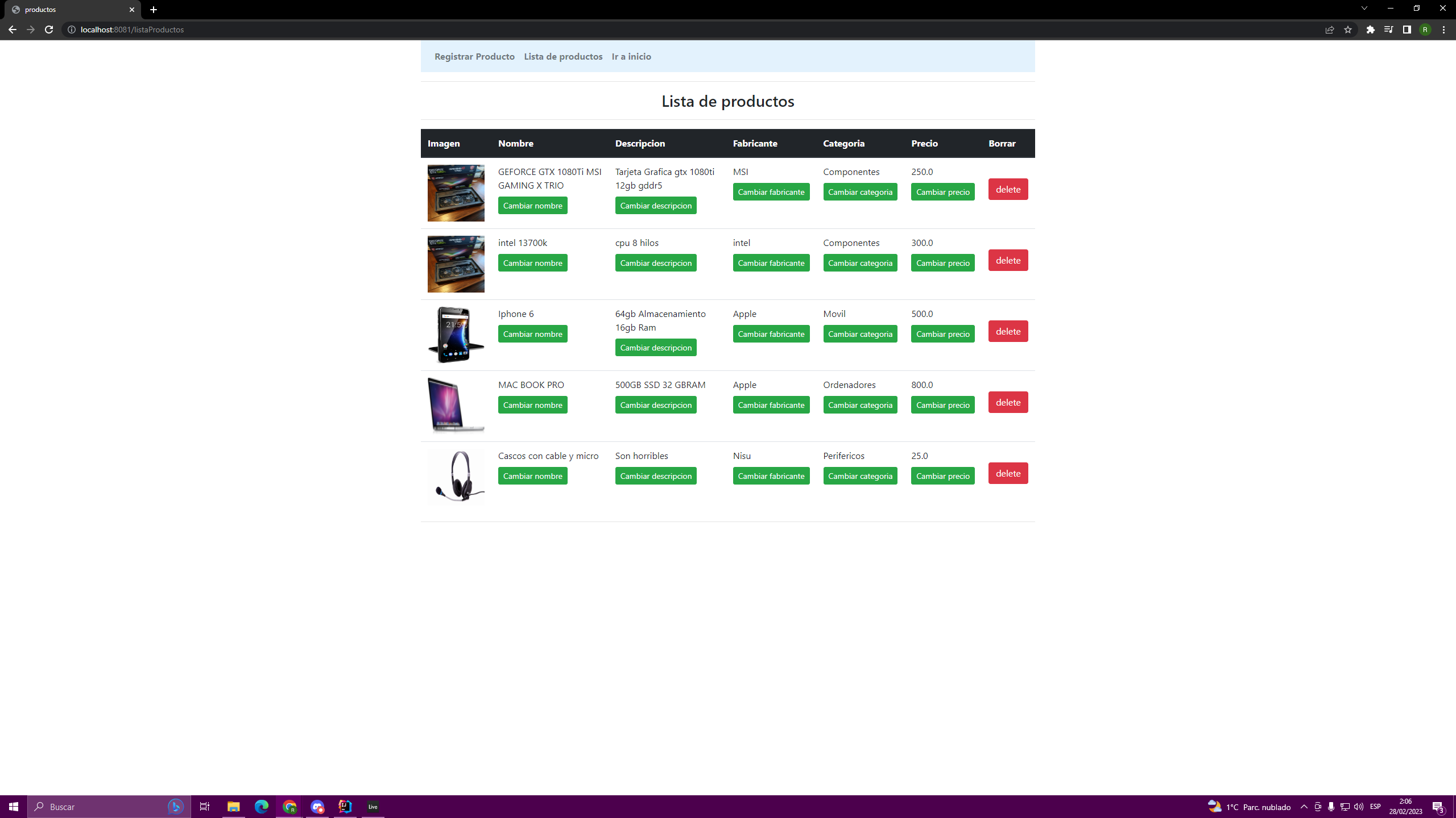 - Añadir eliminar y ver productos