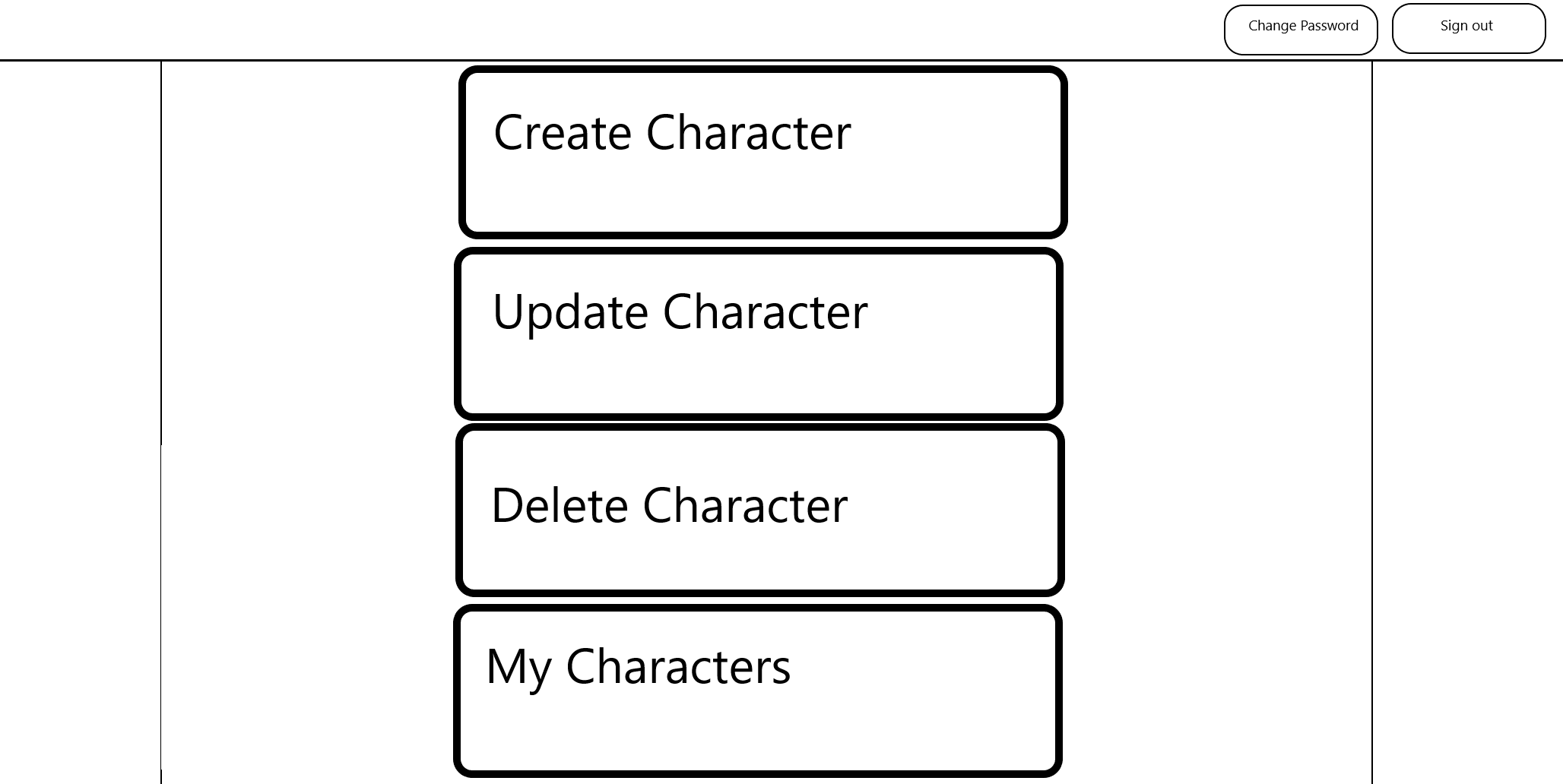 Create an account and sign in. You'll be give a page with a few buttons on it. Click on New Character to start making your first character. After the fields have been completed, submit the form to create your first character. The 'My Characters' button will show all the characters you have. 'View Character' will only show a single character that you choose via their ID. (This will be updated in the future). You can update your character by, you guessed it, pressing the update button. You'll have to input the ID for the character you want to update as well as fill out the entire form. Changing your password is simple, but there's no forgot-password functionality at the moment, so be careful! Signing out will prevent others from accessing your characters, so don't forget to sign out if you plan on keeping the window open!