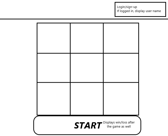 I had originally intended to create the game with a very minimalistic approach. I wanted the board and some buttons, nothing more. The first thing I did was create a wireframe to have an idea of how the page was going to look.