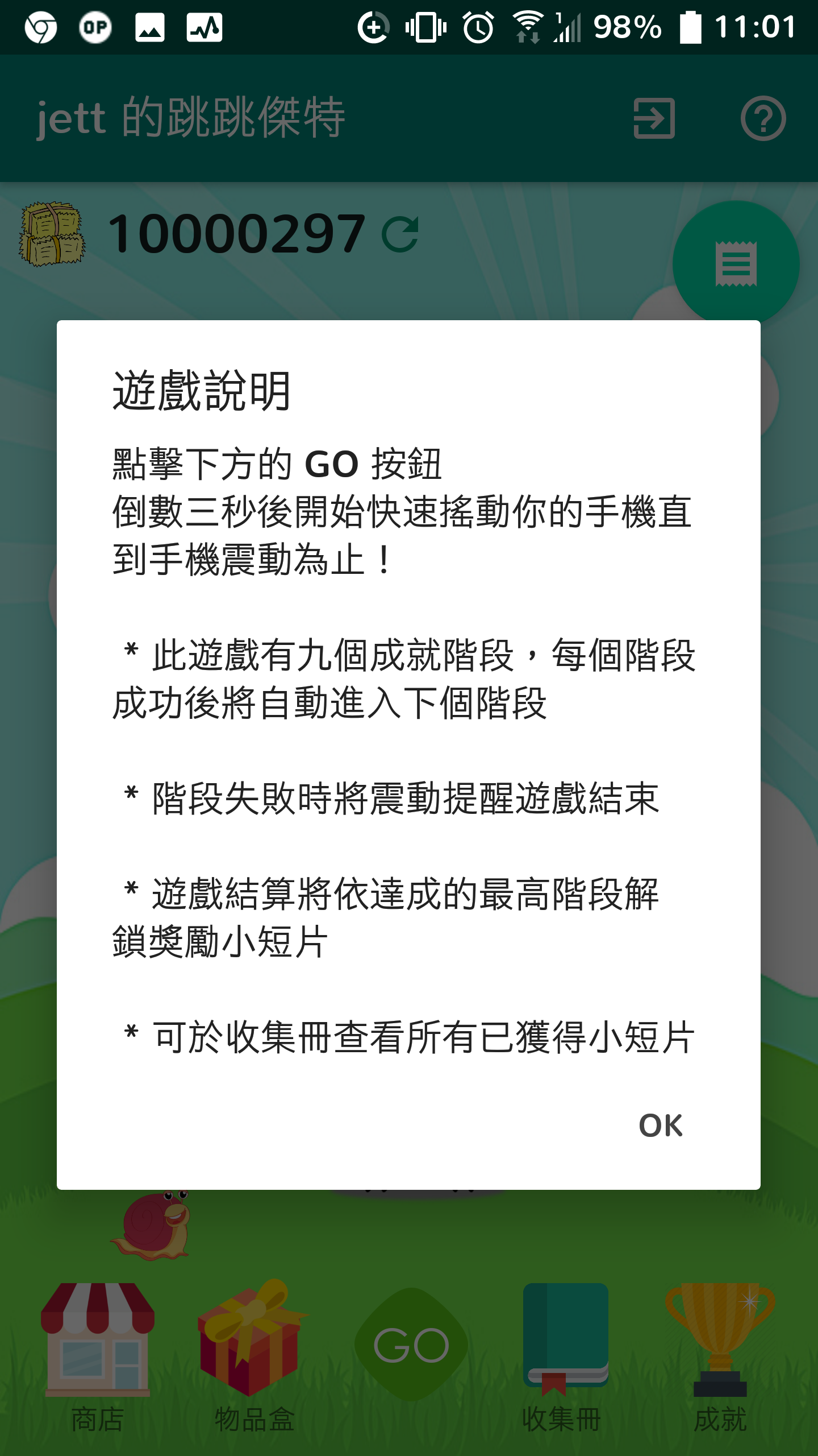 遊戲方式為快速並持續搖晃手機直到手機發出震動提醒遊戲結束
