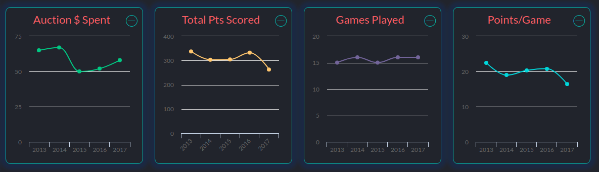 This is the most complex app I have built, and also the one I am most proud of. The ability to set up web sockets is really funand useful, and graphing histoical data for use in fantasy sports is something I am personally very interested in. I look forward to continuing to push this project forward.