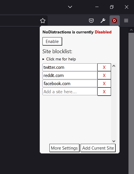 Use if: You just want a simple add-on to block distracting websites when enabled, an extension that has an intuitive and straightforward UI.