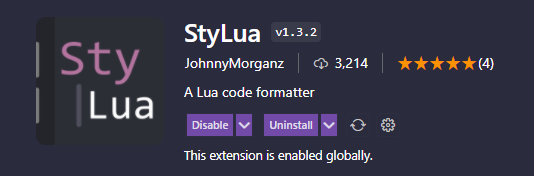- Download the extension called StyLua. It will look something like the following if you search for it on the extensions page