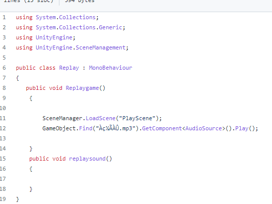 Code that causes the game Replay.cs to run again. Apply to buttons to restart the game.