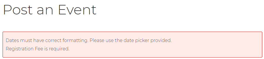 - Click "Post Event." You will receive an error message saying you must fill in the required fields.