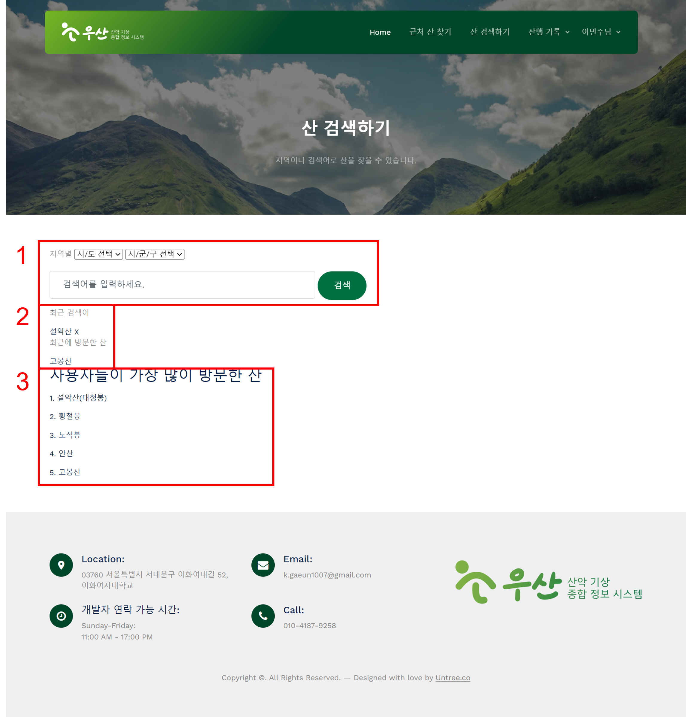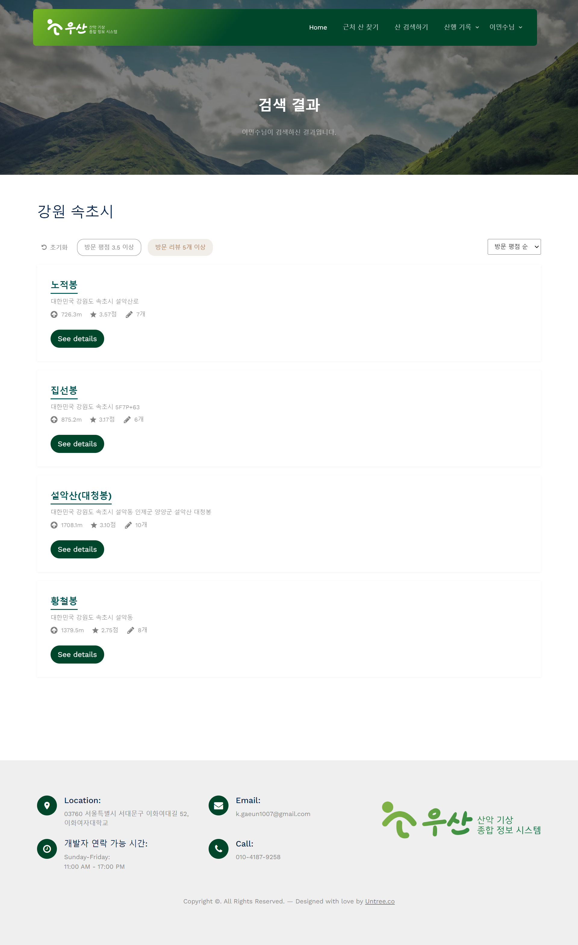 - 메인 페이지 - 산 상세 페이지 - 네비게이션바, 푸터 |