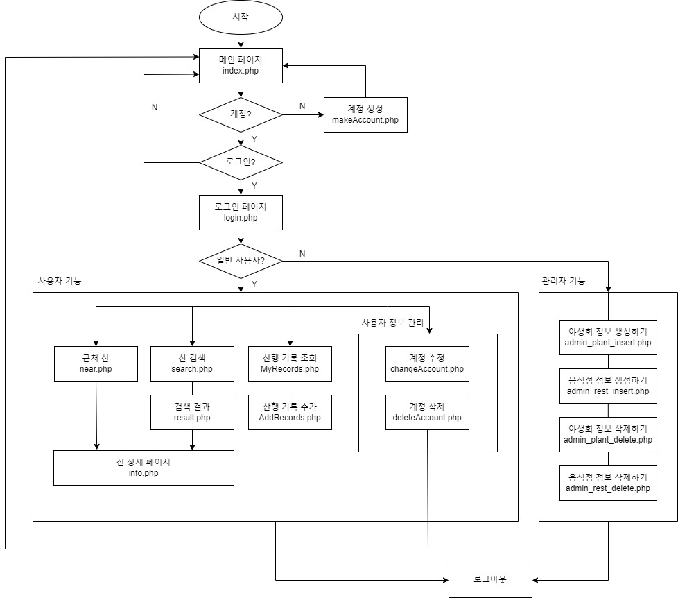 - 회원가입 페이지 - 계정 수정, 삭제 페이지 - 산방문기록 생성 페이지 - 산 방문기록 조회 페이지 |