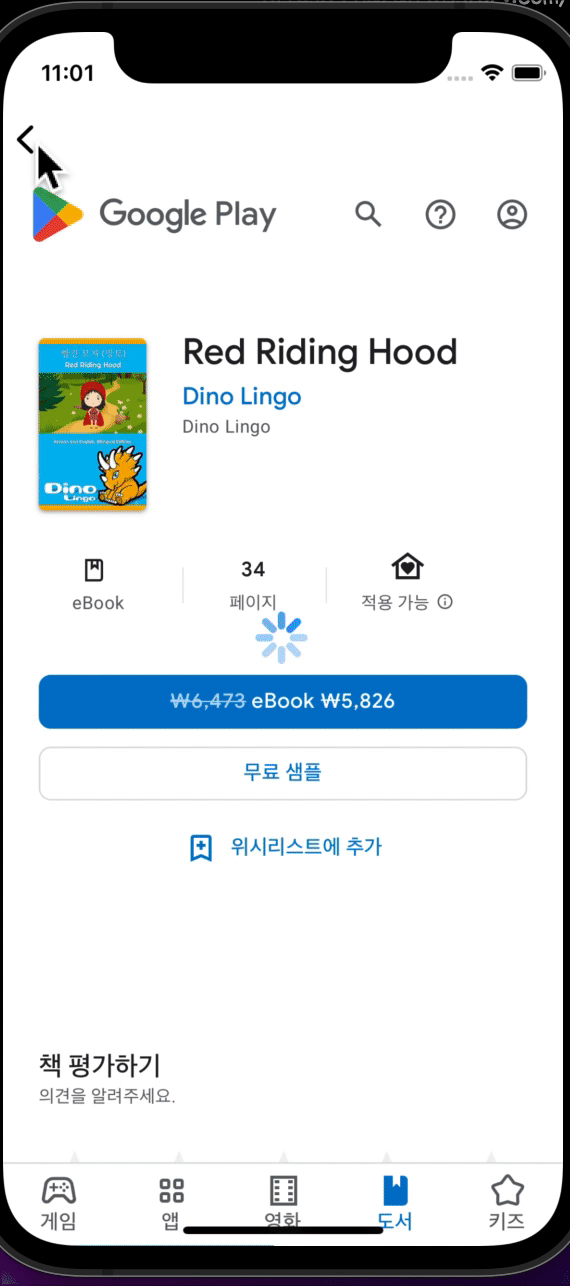 - infoLink: "http://books.google.co.kr/books?id=PIVQ6PANsikC&dq=Red&hl=&source=gbs_api"MVVM 아키텍처사용infinite scroll(무한스크롤) 구현- 리스트에서 책을 터치하면