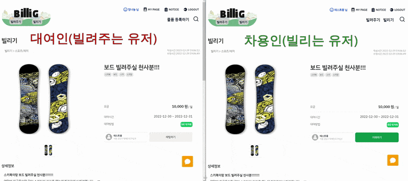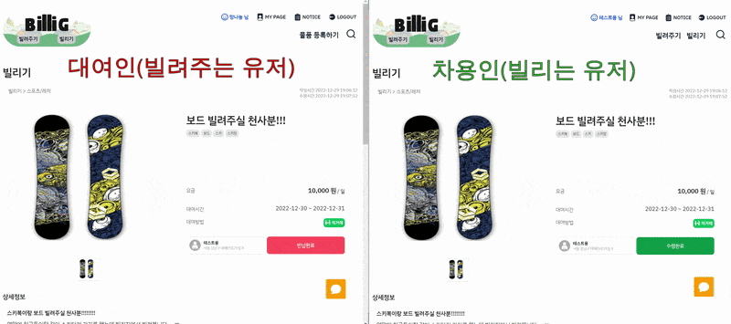 - 빌려주기/빌리기 게시물 내 거래 프로세스