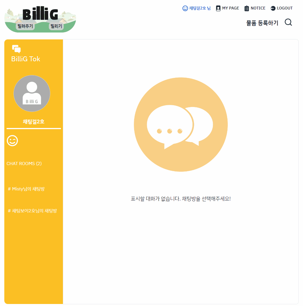 | 채팅하기/채팅방 | 다른 사람과 실시간 대화가 가능하며, room을 구현하여 사용자별 1대1 채팅할 수 있습니다. 대여 물품 상세페이지에서 채팅하기 버튼을 통해 접근하여 최초 채팅방을 생성하며, 이후 메인 화면 우측 하단의 채팅 아이콘으로 접근할 수도 있습니다. |