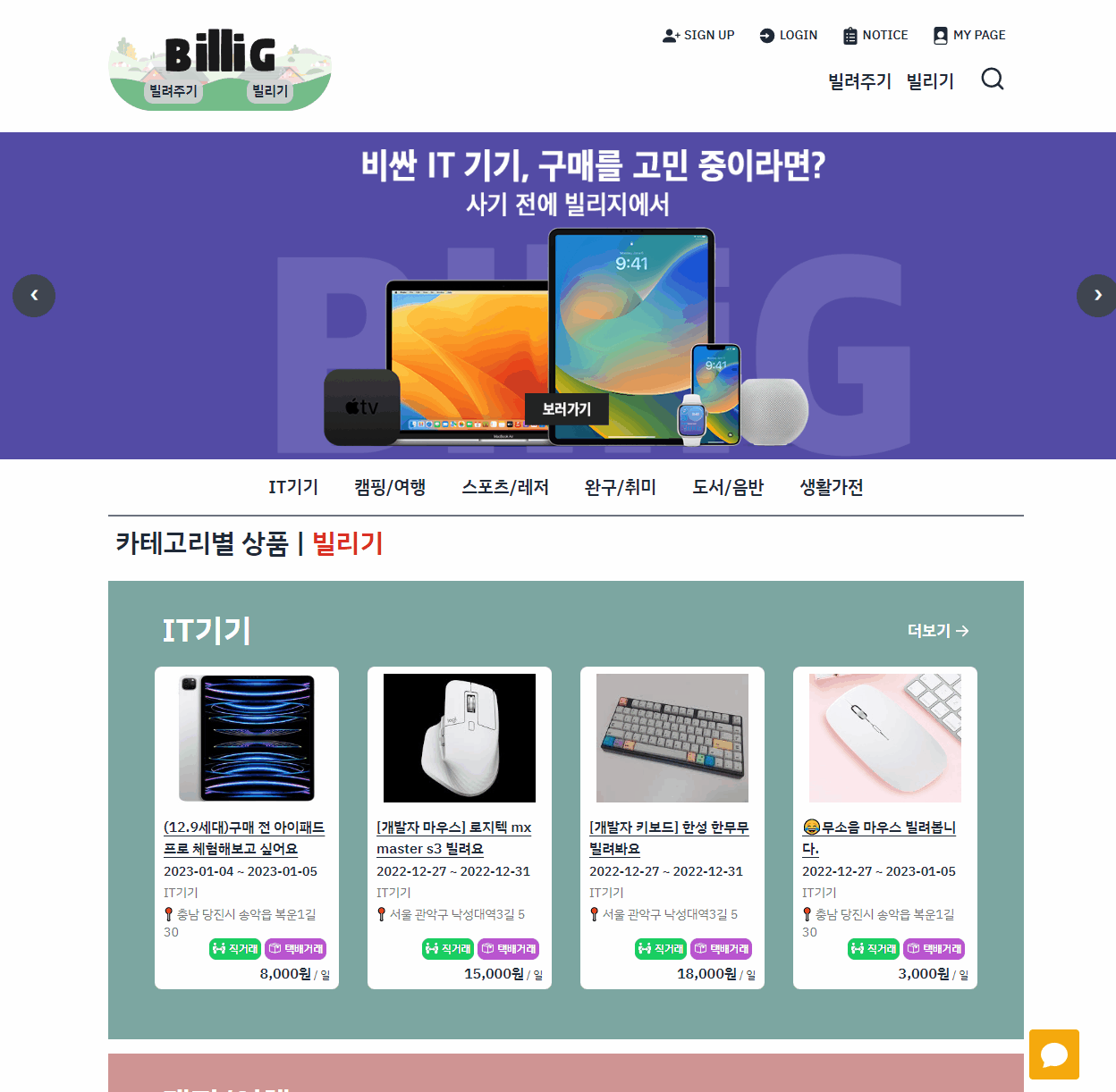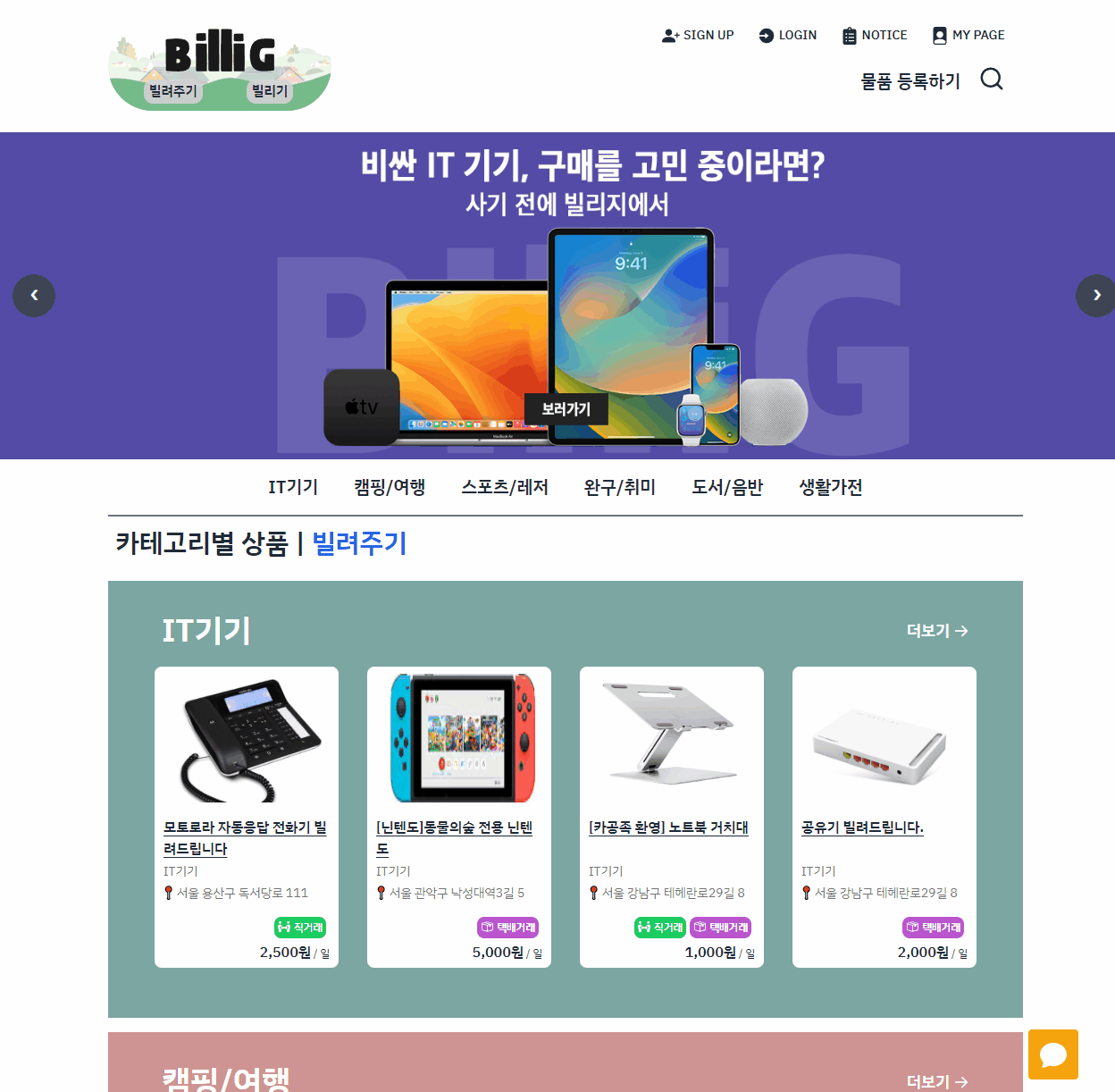 라는 아이디어에서 <물품 대여 서비스> 를 기획하게 되었습니다."