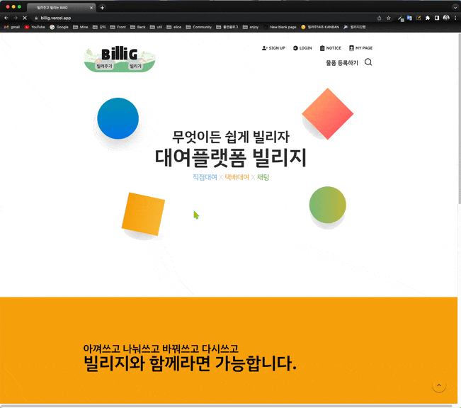 | 메인화면 | 빌리지가 제공하는 서비스를 설명합니다. |