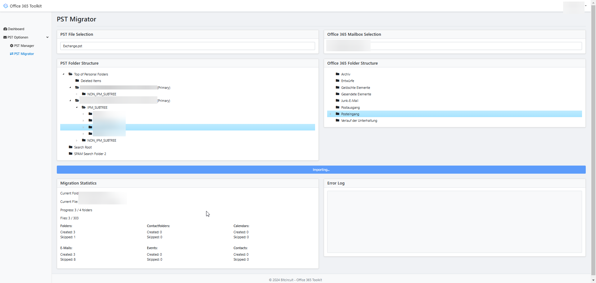 - Tested with PST Files exported from Exchange via Powershell Bulk Export