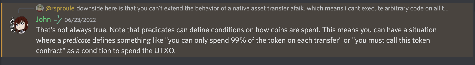Utilize the sway predicate system to bind smart contracts to native assets.