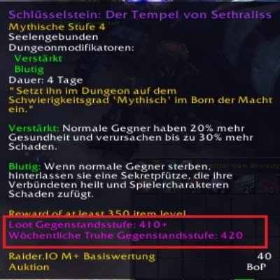 WhatADrop is a very small addon that will add tooltips to your Keystones so you can quickly see what kind of reward you will get at the end of the run, what kind of reward you will get in the Weekly Chest if that keystone is your highest.