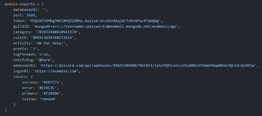 Your MongoDB Database URI (e.g. mongodb+srv://Username:<password>@modmail.mongodb.net/) |
