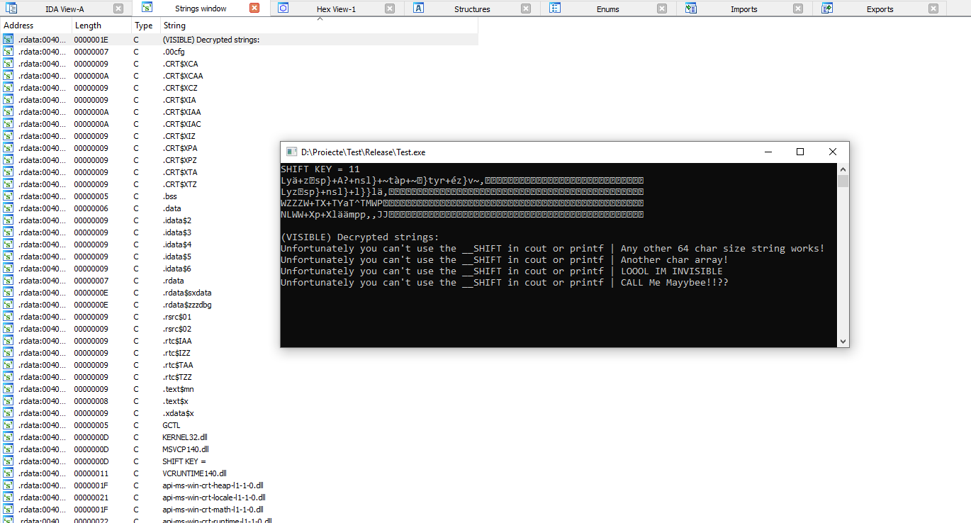 This is nowhere as good as the so renowned XOR method.You can't use it in functions like std::cout or printf. You can't encrypt a variable while passing it as a function parameter (you will need to declare the string first and encrypt it. You can however decrypt strings in functions, since it returns a pointer.).