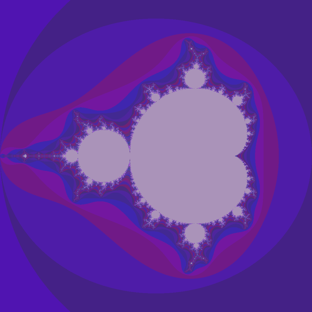 There are 256 layers in this rendering of the mandelbrot set, so each color is repeated once every 64 layers. Additionally, I added another factor to alternate between dark and light colors, making each layer more distinguishable.