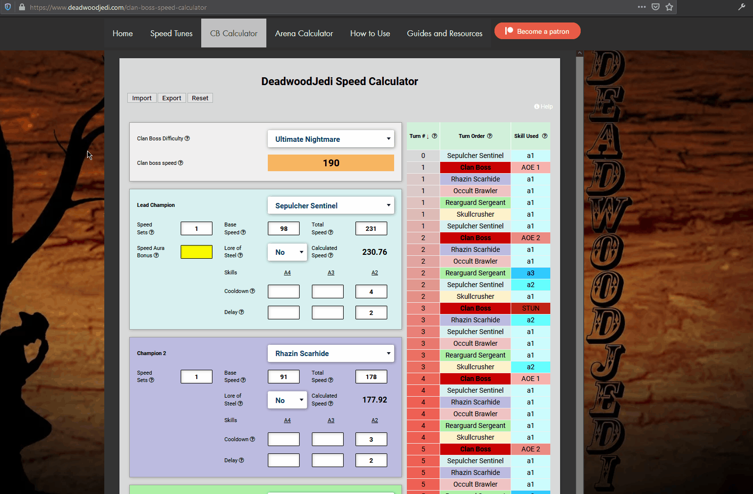 A browser extension for DeadwoodJedi's Clanboss Calculator that enables the exporting and importing of JSON files to save and share your CB speedtunes for Raid: Shadow Legends.
