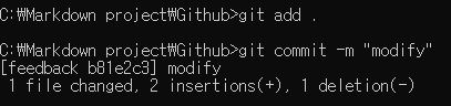 feedback브런치를 가리키고 있는 상황에서 수정하고 추가한 readme파일을 커밋한다.